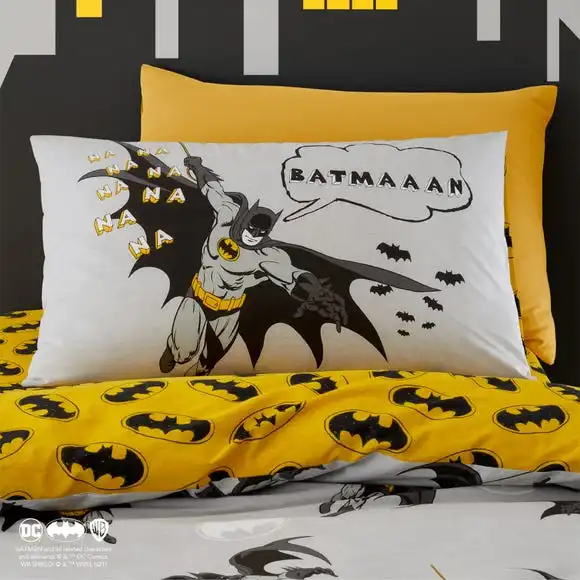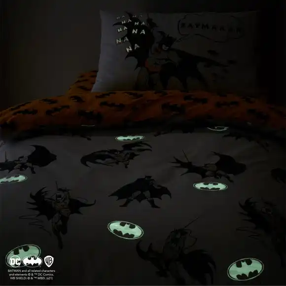 Bosting a fun and exciting Glow in the Dark Disney Batman design, this duvet cover and pillowcase set is perfect for Batman lovers. With a fully reversible design, your little one can choose between two cool designs. Made from polycotton this bedding set is soft, durable, and machine washable. Other matching bedroom accessories are also available.