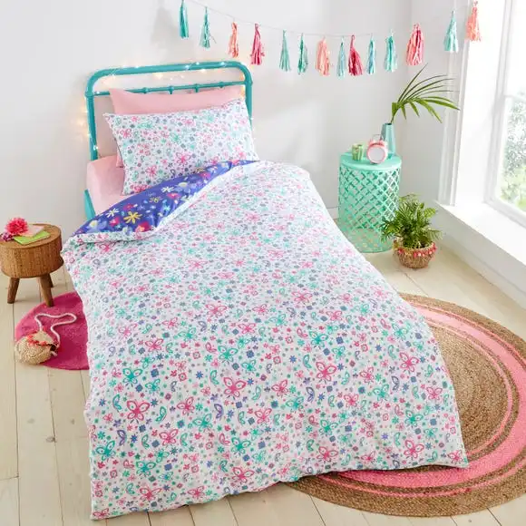 Calling at all the Encanto lovers, this duvet cover and pillowcase set has been crafted from 100% soft and cosy cotton in a 144 thread count. Designed with a reversible style with the classic Encanto characters such as Mirabel, Isabella, Luisa and Madrigal on one side and a pretty floral and butterfly print on the reverse, giving your little musical lover the option to switch it up whenever they desire. It comes complete with matching pillowcase(s) and is finished with a secure button closure for an uninterrupted night sleep.