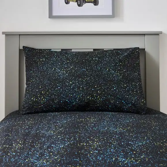 Featuring a fun and colourful camouflage design, this duvet cover and pillowcase set is perfect for keeping your child warm this season. Crafted a soft polycotton blend in a 144 thread count. Quickly close and open the cover using the popper fastening and simply pop this set in the washing machine for easy cleaning.