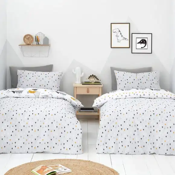 Boasting a colourful, geosaurus pattern, this twin pack of duvet covers and pillowcases is perfect for sleepovers or for having a spare duvet cover and pillowcase available. This set is made from 100% cotton making it super soft and the duvet overs are also reversible so you have endless options of patterns. This set is machine washable and other matching bedding and curtains are available.