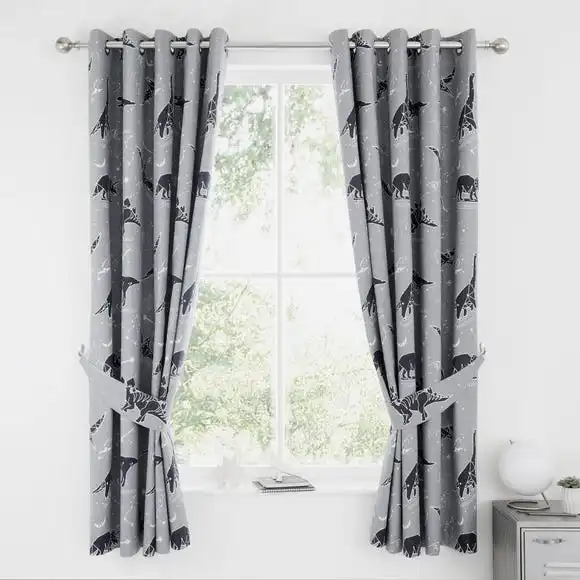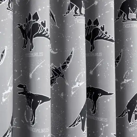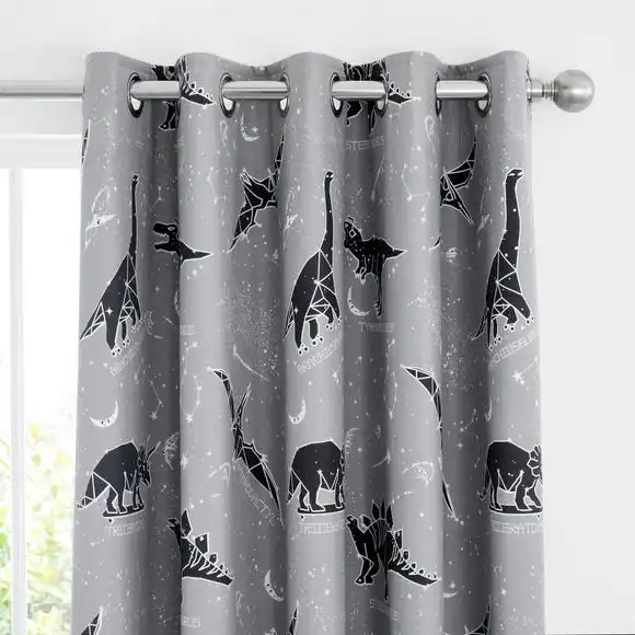Dunelm Grey Space Dinosaur Thermal Blackout Eyelet Curtains