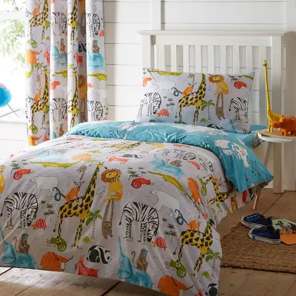 Bring the animal kingdom to your bedroom with the My World duvet cover and pillowcase set. Printed with a fun and bold atlas design on one side and a bright animal pattern on the reverse, this duvet cover set is ideal for any animal lover.