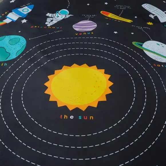 This duvet cover is out of this world! Showcasing our solar system, this duvet cover and pillowcase set is powered by fun. Crafted from a polycotton material, the set is easy to care for and is fully machine washable. The duvet cover set has been finished with a button closure which helps secure the cover around the duvet whilst in use. Pair the duvet cover with the matching fitted sheets and bedspread for a spectacular look.