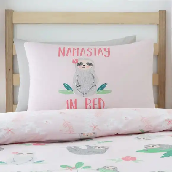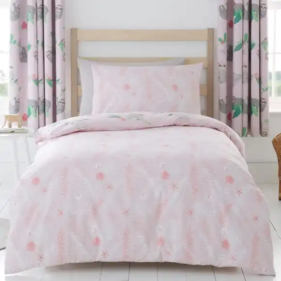 Boasting a colourful animal print, this pink sloth duvet cover and pillowcase set is perfect for adding a touch of fun to your children’s bedroom. With a reversible design, you can choose between two designs for your child’s bed. This set is machine washable and is available in a range of sizes. Other matching curtains and bedding are also available.