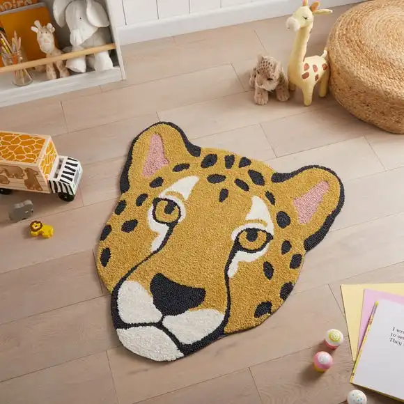 Spark little imaginations with the Rory Leopard Face Rug. This playful animal shaped design is a cute and fun character to add to any child’s room. Crafted using the cut and loop technique to add depth and texture to the different elements of design, the Rory Leopard Face Rug uses 100% polyester pile to maximise softness and durability, perfect for the rough and tumble of playtime.