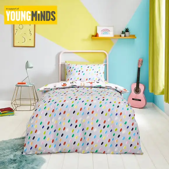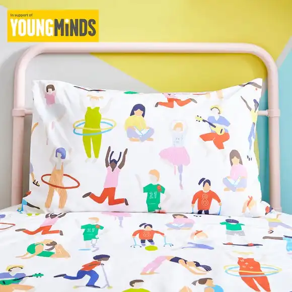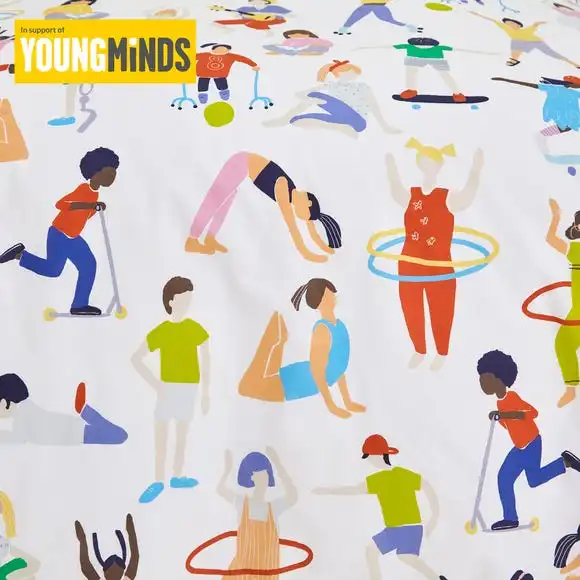 In collaboration with Young Minds, this duvet cover and pillowcase set boasts an inclusive active children’s design with a printed spot reverse. Being fully reversible allows a quick style swap as and when you desire. The 100% cotton composition makes the duvet cover set both soft and breathable so you can sleep well.