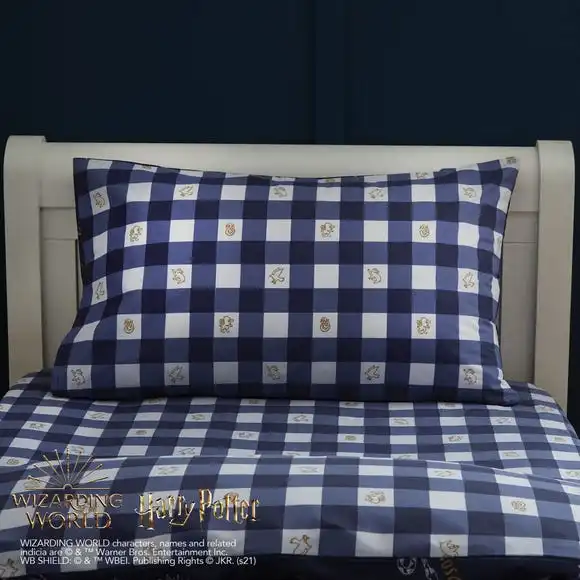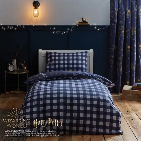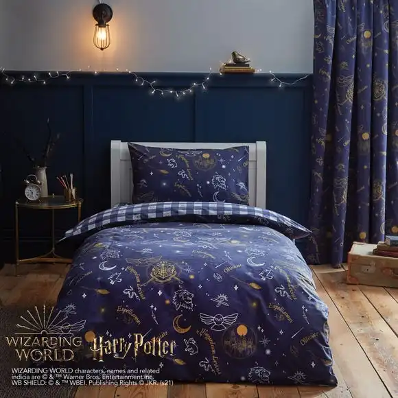 Add a touch of magic to your child’s bedroom with this glow in the dark duvet cover and pillowcase set. Featuring Hogwarts this bedding set is fully reversible so you can choose between two fun designs. Made from polycotton this bedding set is soft, durable, and machine washable. Other coordinating Harry Potter accessories are also available.