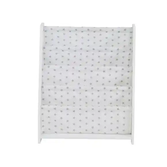 This kids hammock-style bookshelf, with white fabric and grey with printed grey stars is ideal for bedrooms and playrooms. Easy to assemble this bookcase provides you and your kids with ample storage space for all their books, making reading time easier and more organised.