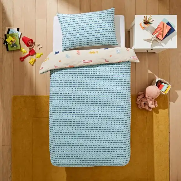 Give your little one a bedding of dreams with this super cool Natural History Museum Rockpool inspired duvet cover and pillowcase set. This bedding set is cleverly crafted with a reversible design, with a Rockpool design on one side and a blue sea wave print on the other, so your rockpool lover can switch their bedding up whenever they desire. Made from soft and cosy polycotton with a 144 thread count, which is easy to machine wash. This duvet cover and pillowcase set comes complete with a standard pillowcase which is also reversible and is finished with a secure button closure for an uninterrupted night sleep.