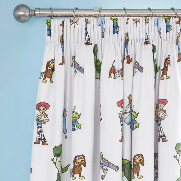 Complete with a traditional pencil pleat header, this pair of curtains feature all of your favourite Toy Story characters on a white colourway which coordinates perfectly with the Toy Story bedding range available online. Machine washable for easy care, these blackout lined curtains eliminate external light, are made from a soft touch polyester or polycottonm and come in range of sizes.